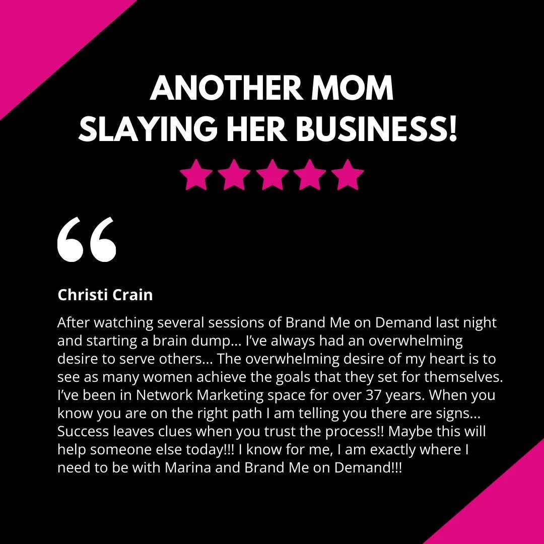 “Another mom slaying her business!” or “Client Love for [Your Name]”